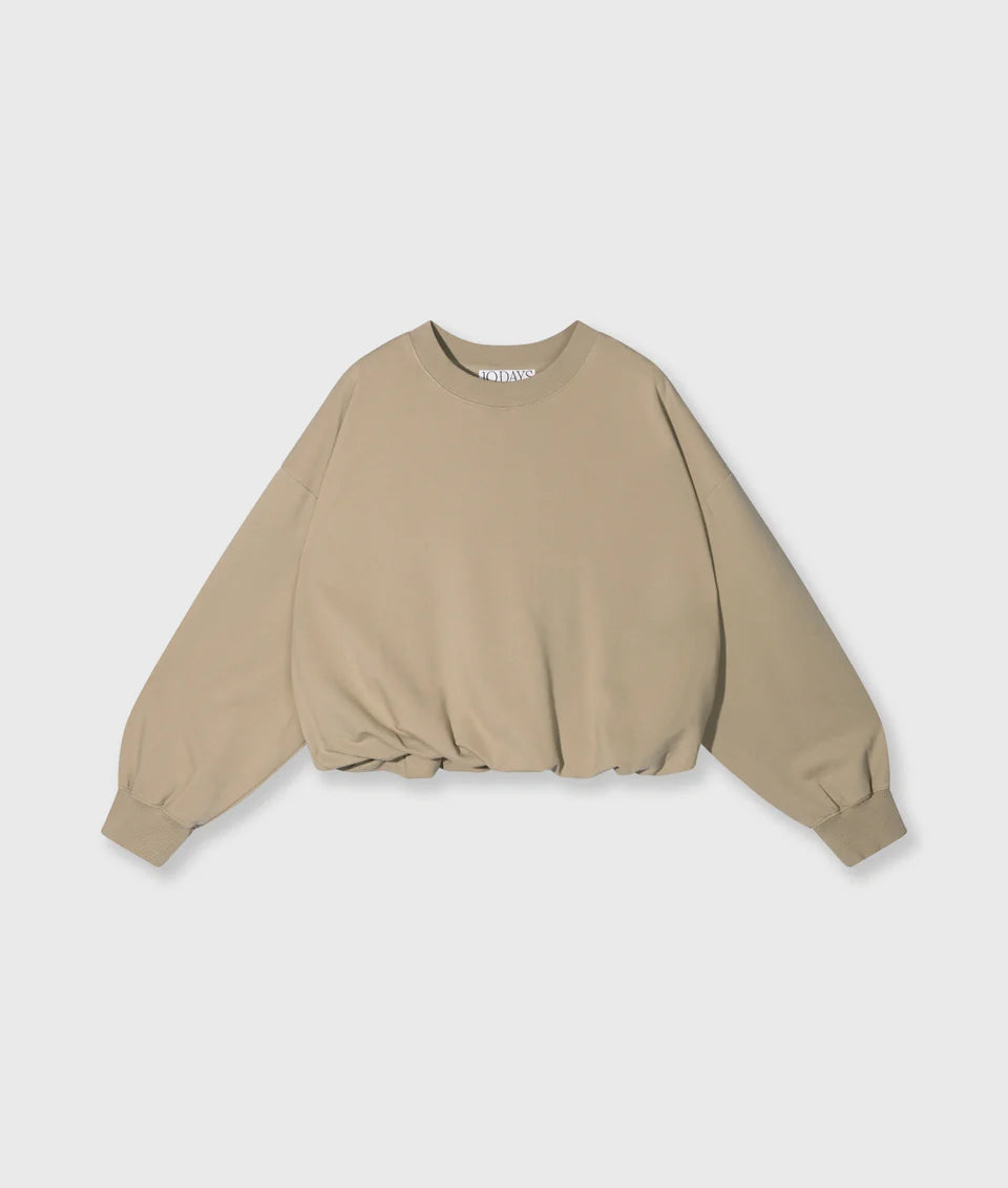Oversized trui, gemaakt van een soepele mix van katoenfleece en jersey. Voorzien van geribde boorden, een ballonvormige zoom met plooidetails en een grote ‘baseball 10’-patch op de achterkant.