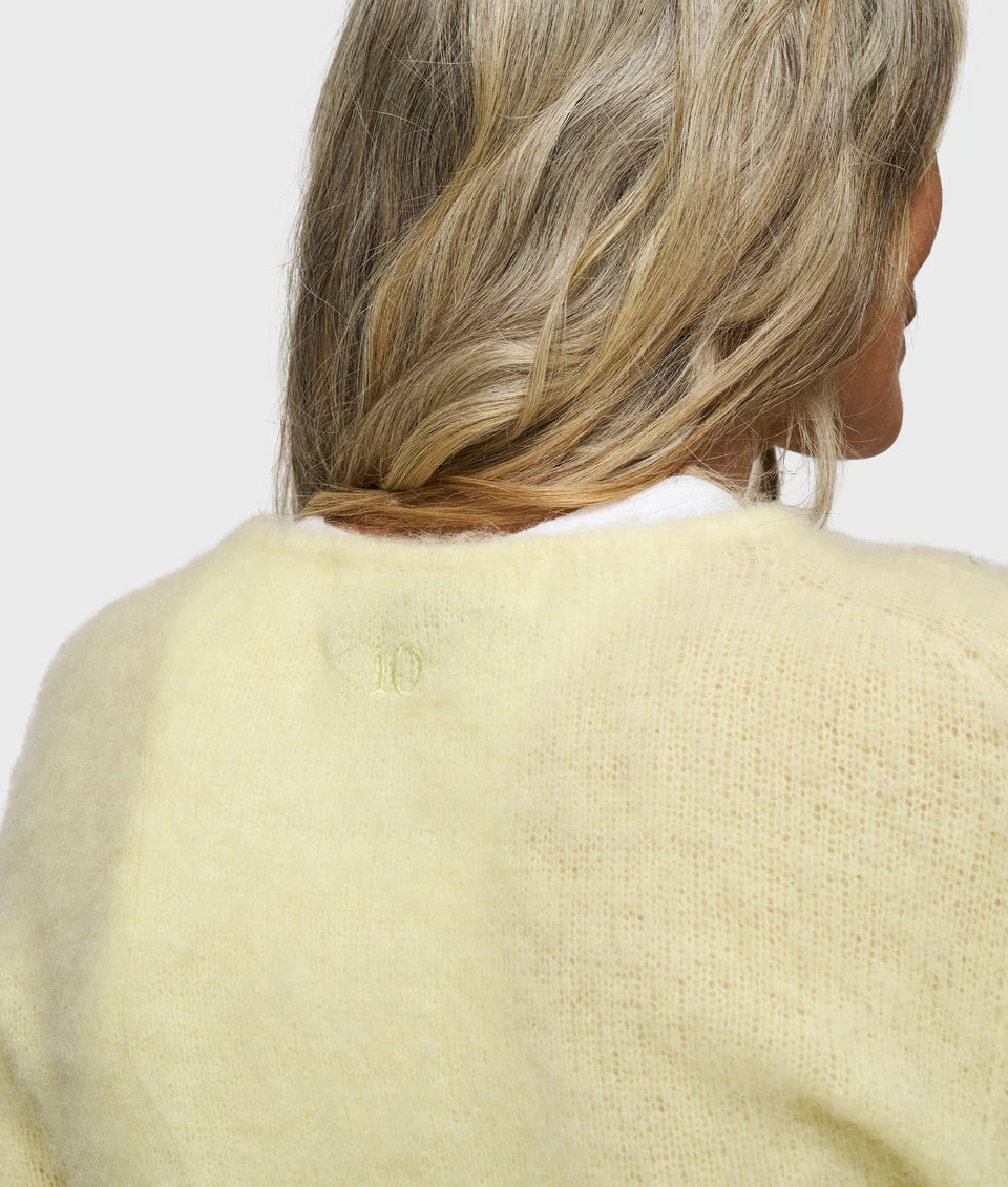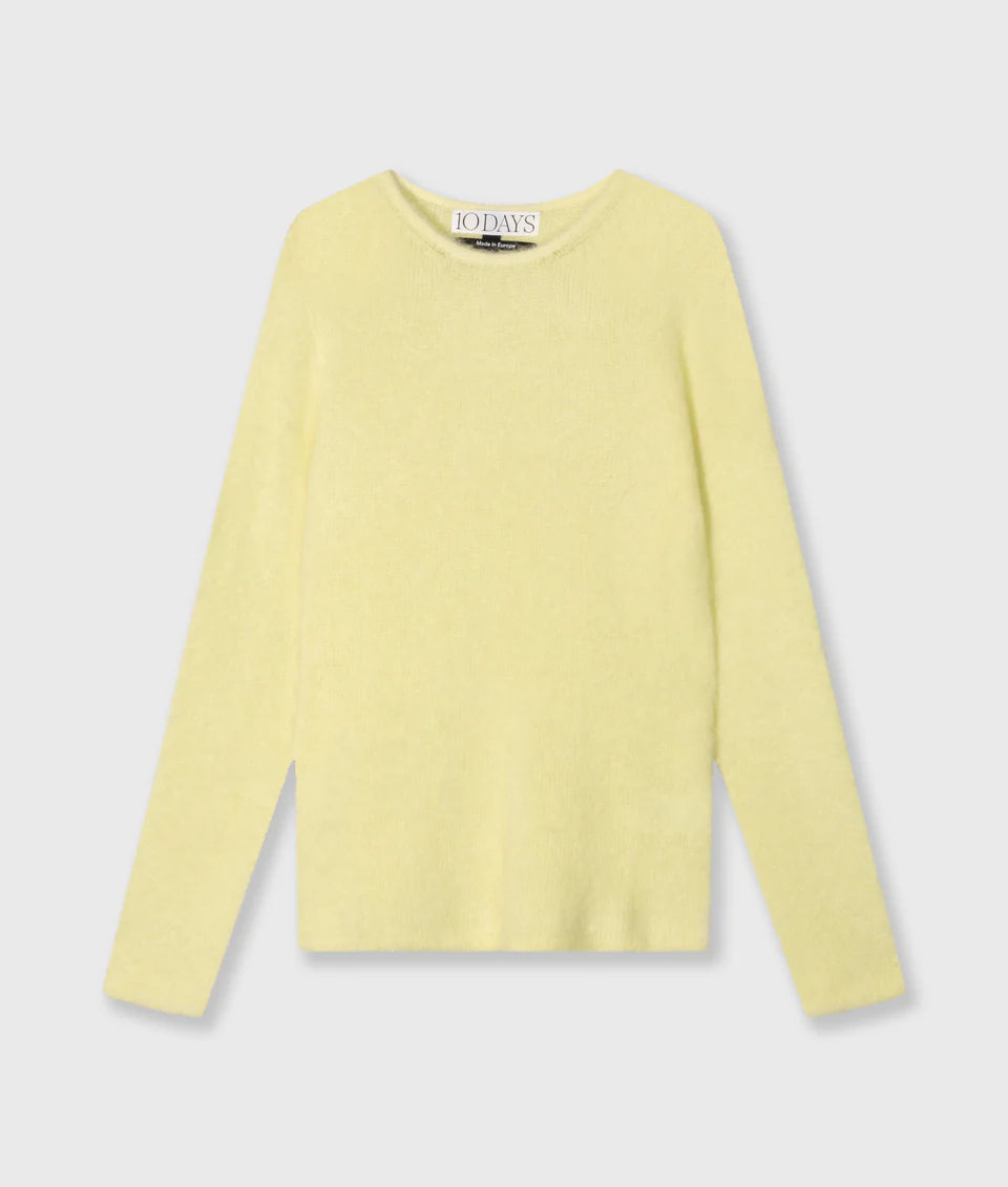 Slim fit trui met ronde hals, gemaakt van zacht geborstelde harige wol, alpaca en polyamide mix. Voorzien van een buisvormige afwerking aan de hals en zoom en een ‘10’ monogram borduursel middenachter.