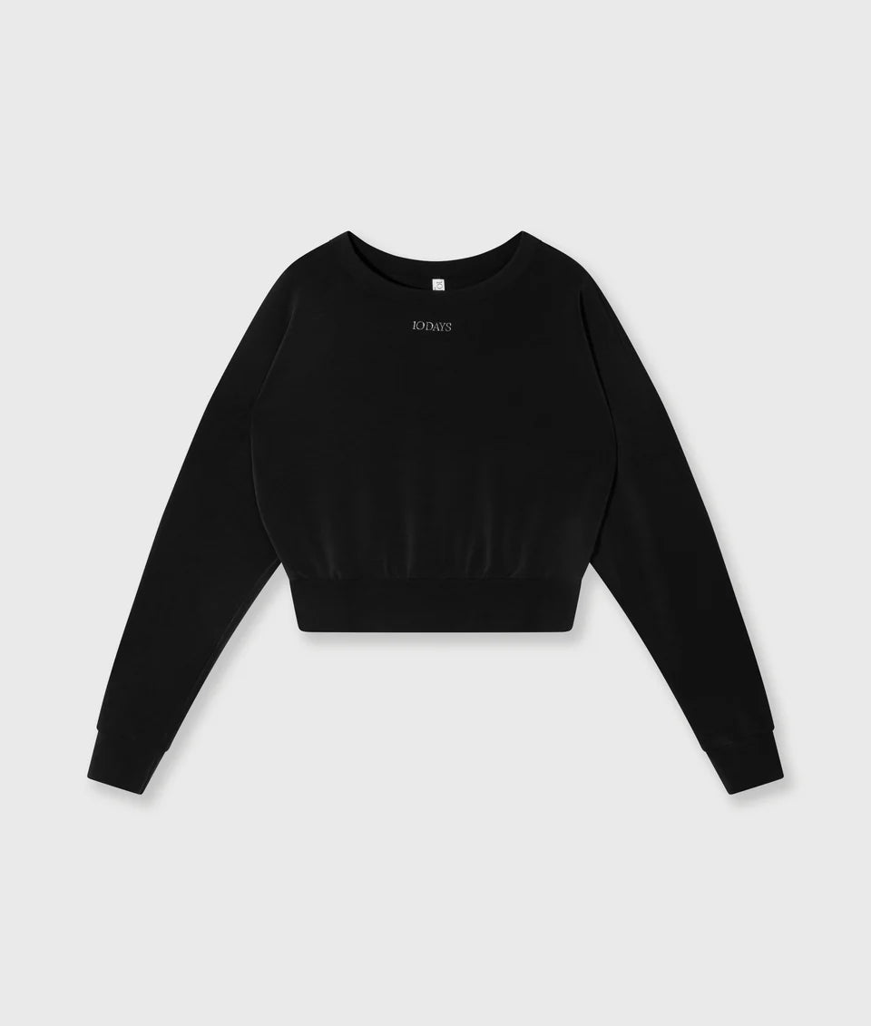 Relaxed fit cropped sweater gemaakt van superzacht stretchmateriaal. Voorzien van een ronde hals, een lage schouderinzet en een ‘10DAYS’ foliedruk op de borst.