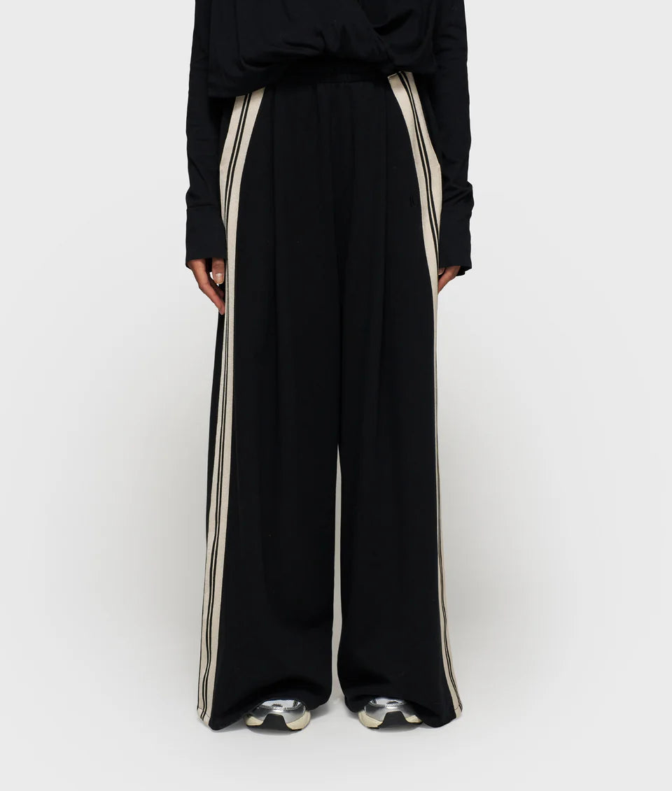 Oversized broek met wijde pijpen, gemaakt van zacht katoen. Voorzien van een hoge tailleband met trekkoord, schuine voorzakken, een faux paspelzak en een diepe plooi aan de voorkant. Afgewerkt met gestreepte banden langs de zijnaden, riemlussen en het 10'-monogramborduursel aan de linkerkant. Opmerking: vanwege het gebruik van meerdere stoffen heeft dit kledingstuk extra zorg nodig na het wassen. Meer informatie over hoe u uw kledingstuk moet verzorgen, vindt u bij de wasinstructies.