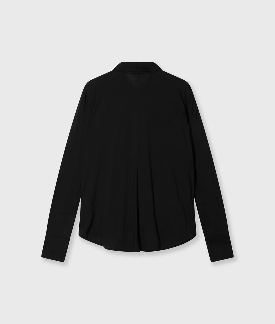 Regular fit wikkelblouse van licht gestructureerde GOTS-gecertificeerde biologische katoenen jersey met een rechte zoom en zijsplitten. Ontworpen met een kraag en knoopsluiting, manchetten met split en een monogramborduursel op de linkermouw.